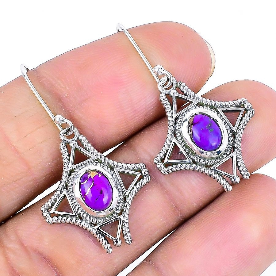 Copper Purple Turquoise Stone Solid Silver December Dangling Earrings Jewelry