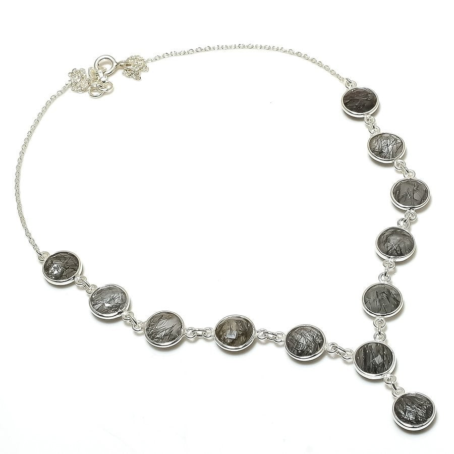 Natural Black Rutile 925 Silver Daughter Elegant Engagement Chain Boho Necklace