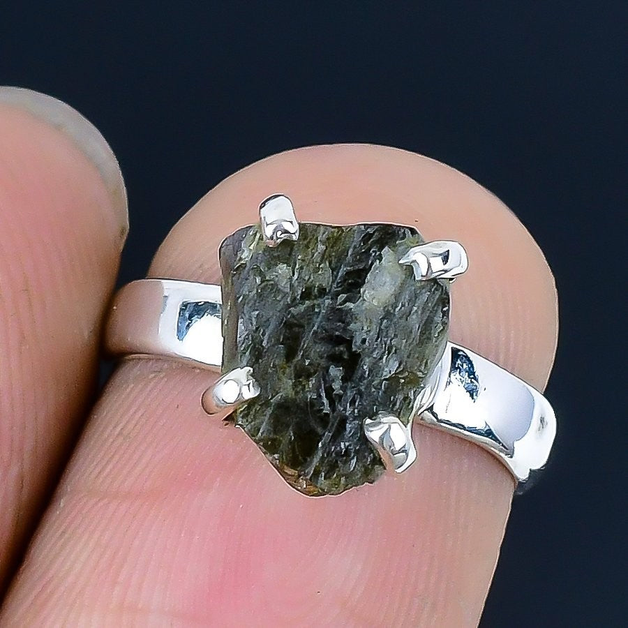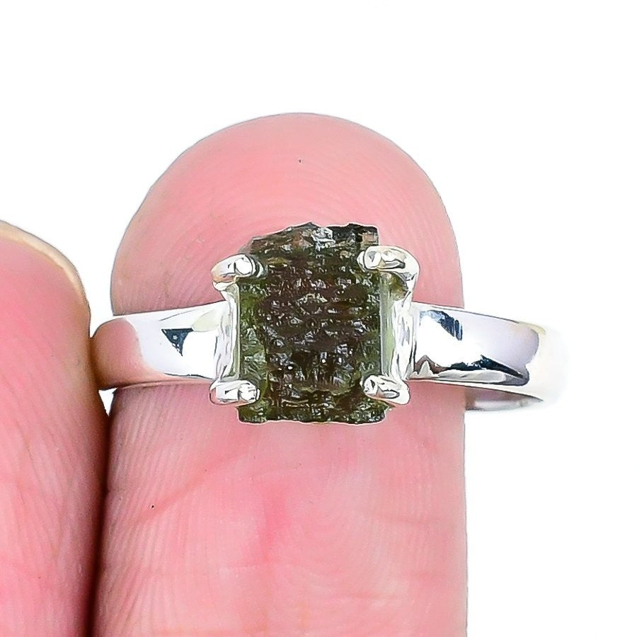 Moldavite Quartz Gemstone Solid Sterling Silver Boho Statement Ring Jewelry US 5
