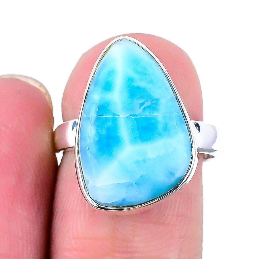 Natural Republic Larimar 925 Solid Silver Wedding Statement Band Ring Jewelry