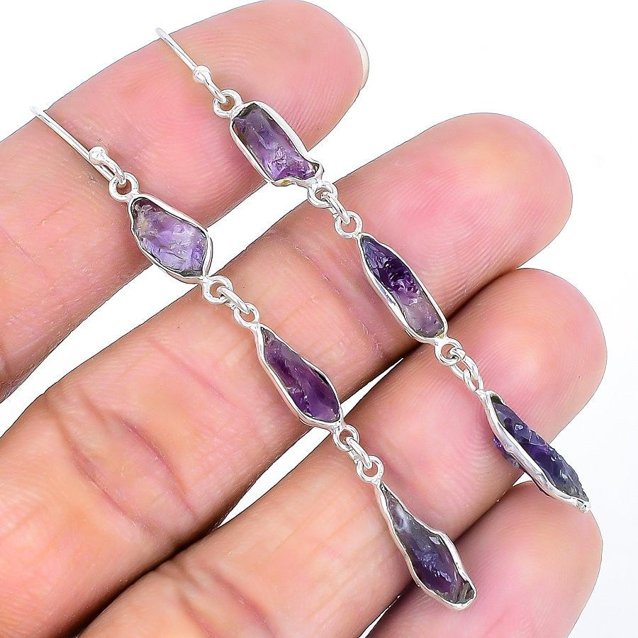 Sage Amethyst Stone Solid Sterling Silver Dangling Daughter Gift Hook Earrings