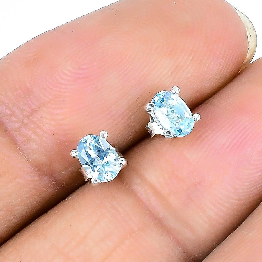 Blue topaz Gemstone Solid Sterling Silver Anniversary Stud Leverback Earrings