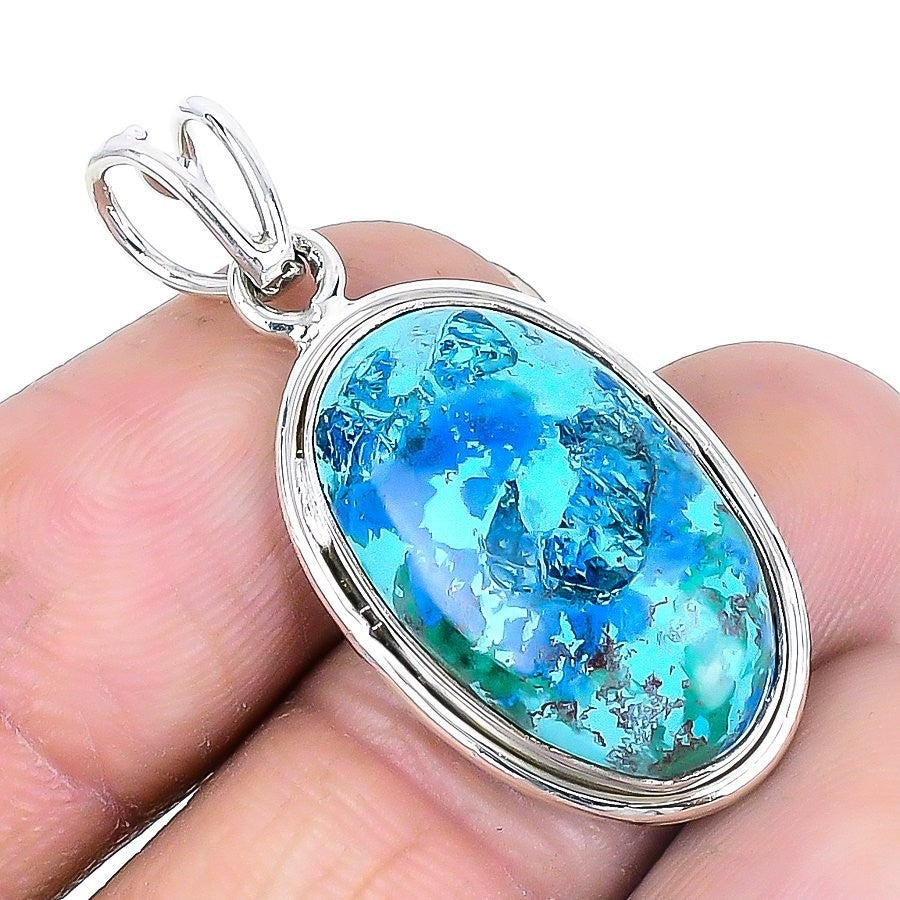 Natural Chrysocolla 925 Sterling Silver Wedding Anniversary Wife Pendant Jewelry