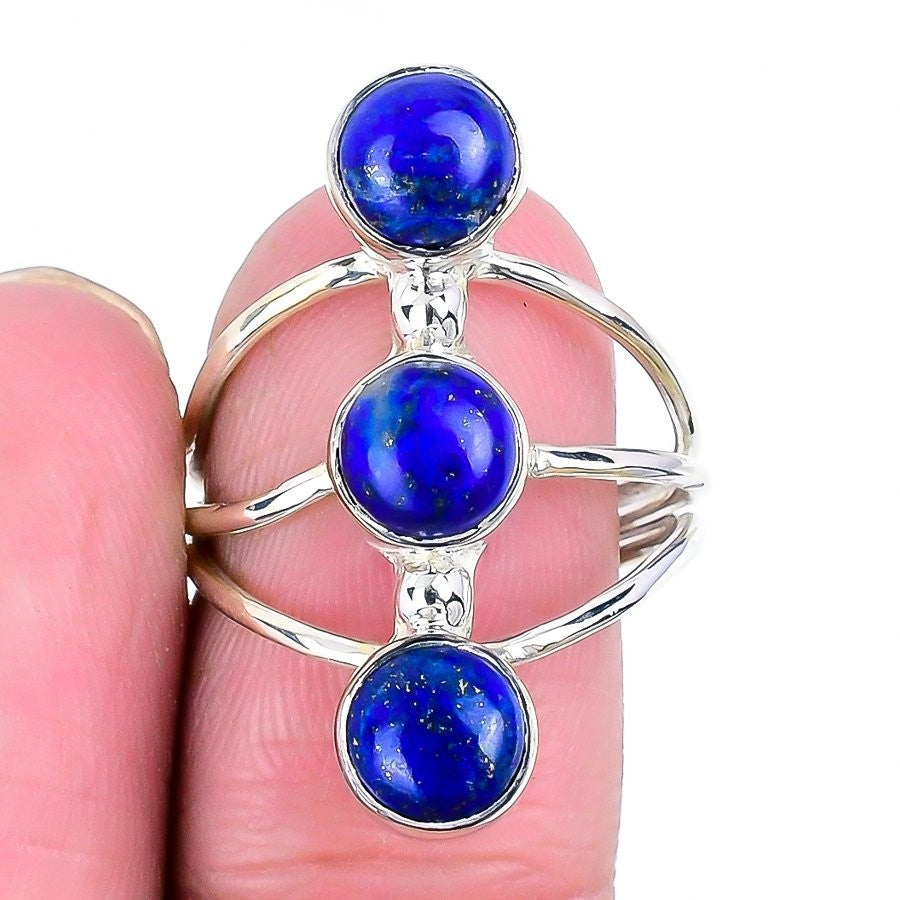 Natural Lapis Lazuli Solid Silver Cluster Daughter Gift Mother Boho Ring Jewelry