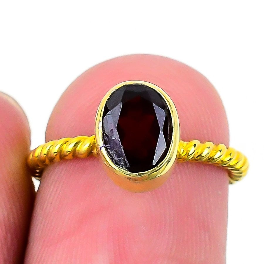 Hessonite Garnet Gemstone Solid Sterling Silver Gold Vermeil Statement Ring US 5