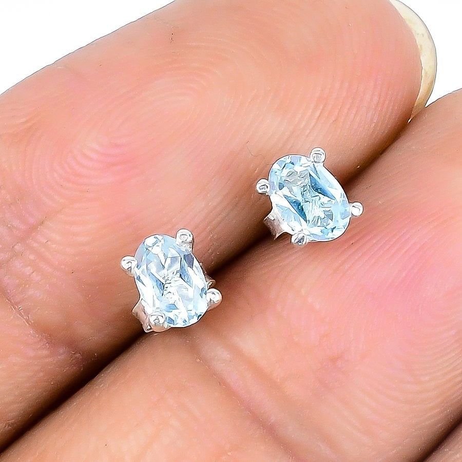 Aqua Topaz Stone 925 Sterling Silver Mother Stud Leverback Engagement Earrings