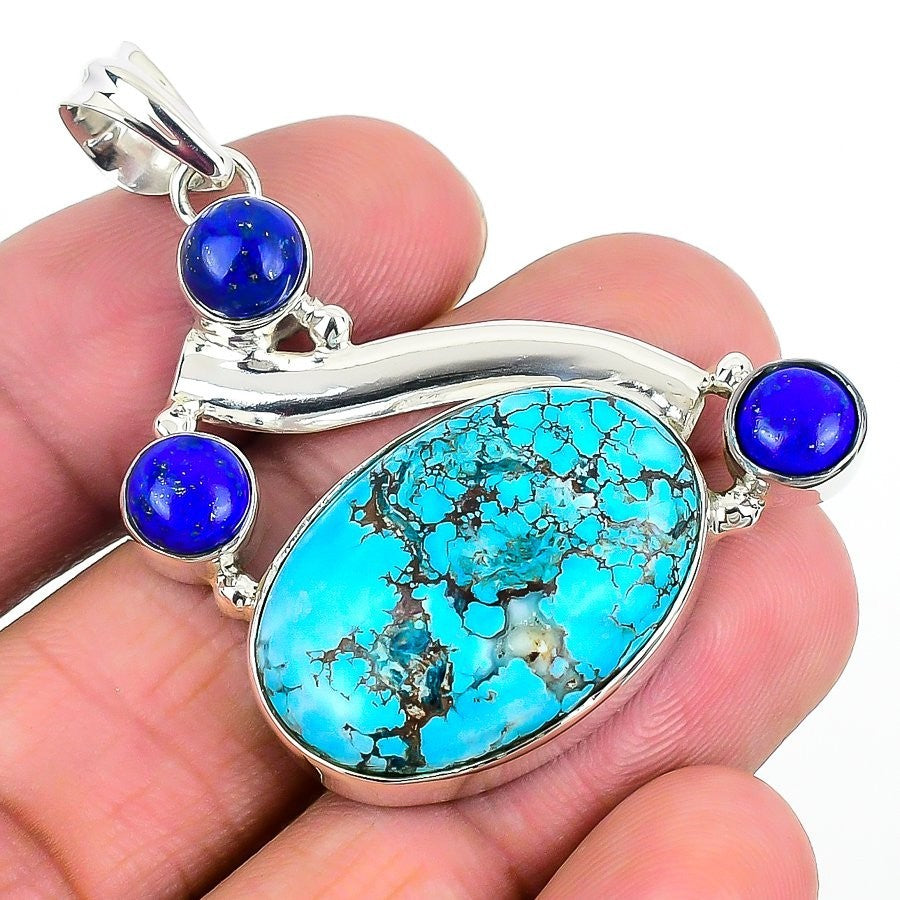 Throat Chakra Tibetan Turquoise Gemstone Solid Silver Mother Channel Set Pendant