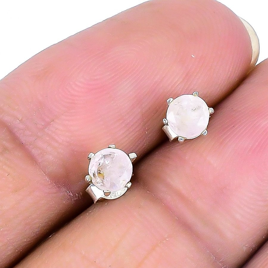 Natural Morganite Faceted 925 Silver Stud Post Daughter Gift Earrings Jewelry