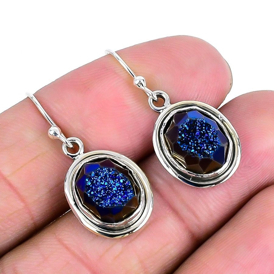 Titanium Druzy Stone Anniversary Dangle New Earrings Jewelry 925 Sterling Silver