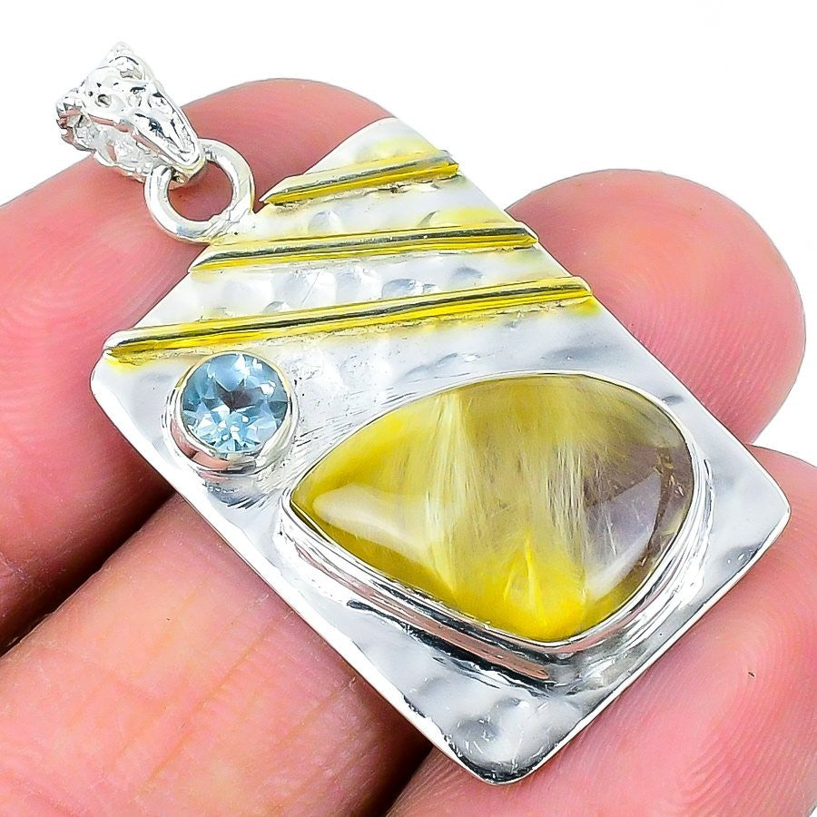Daughters Day Deal Natural Golden Rutile 925 Solid Silver Mother Pendant Jewelry