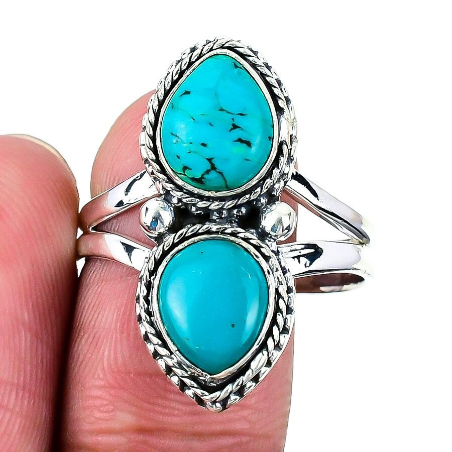 Tibetan Turquoise Stone Statement Wife Ring Jewelry 925 Sterling Silver US 12.5