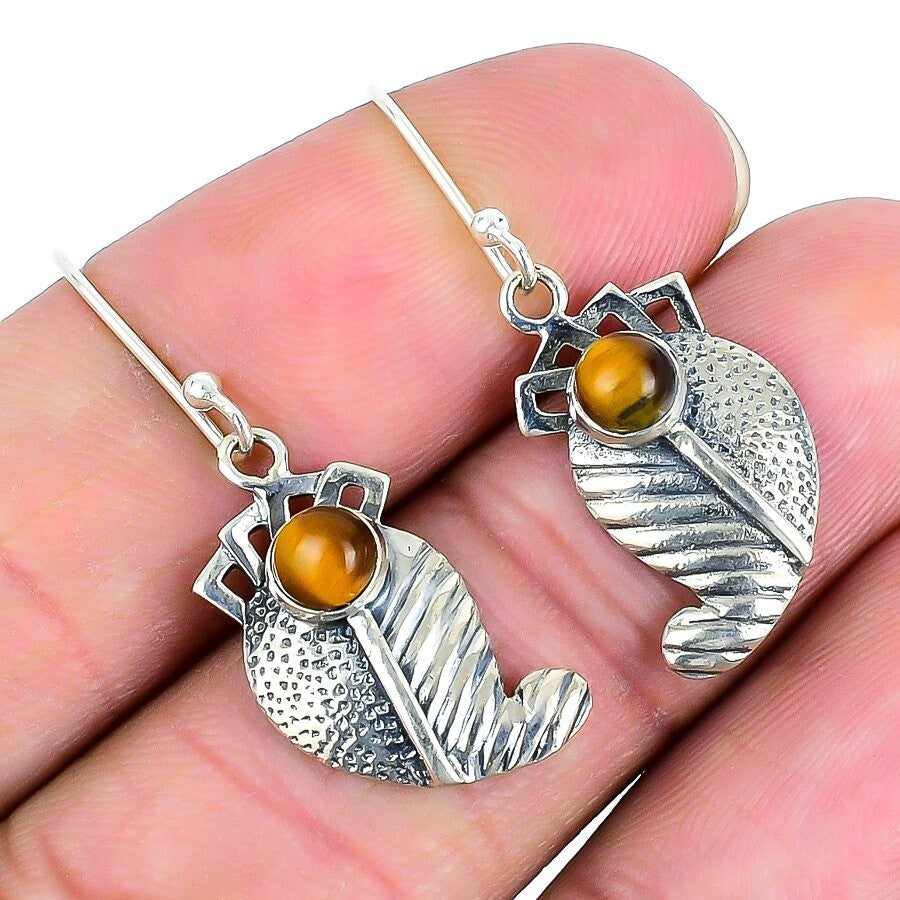 Tiger Eye Gemstone Drop Dangle Daughter Engagement Earrings 925 Sterling Silver