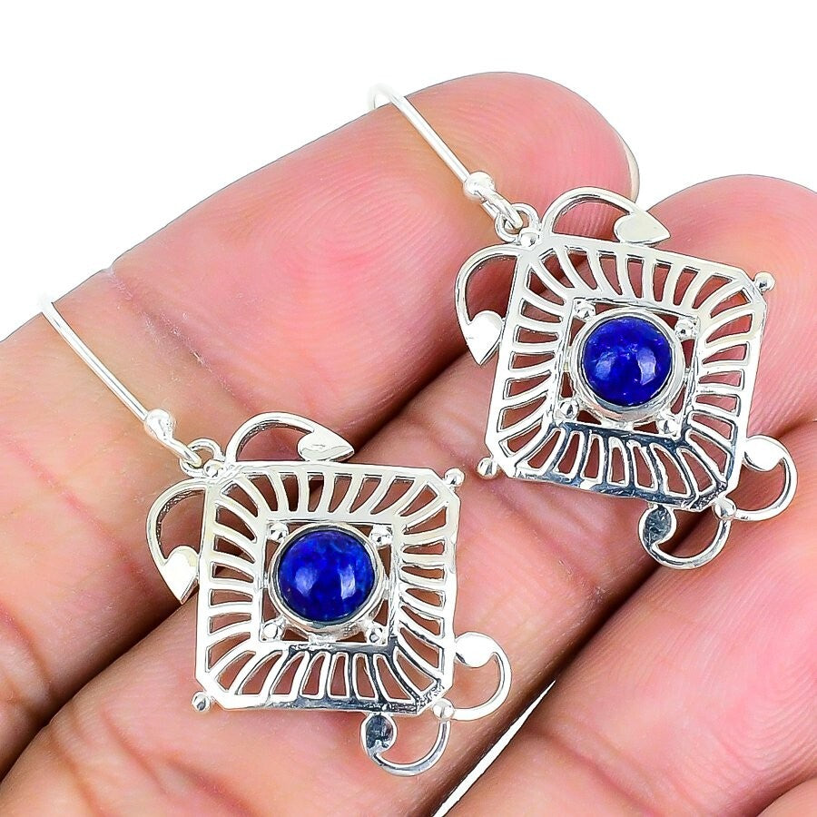 Lapis Lazuli Gemstone 925 Solid Silver Dangle Drop Engagement September Earrings
