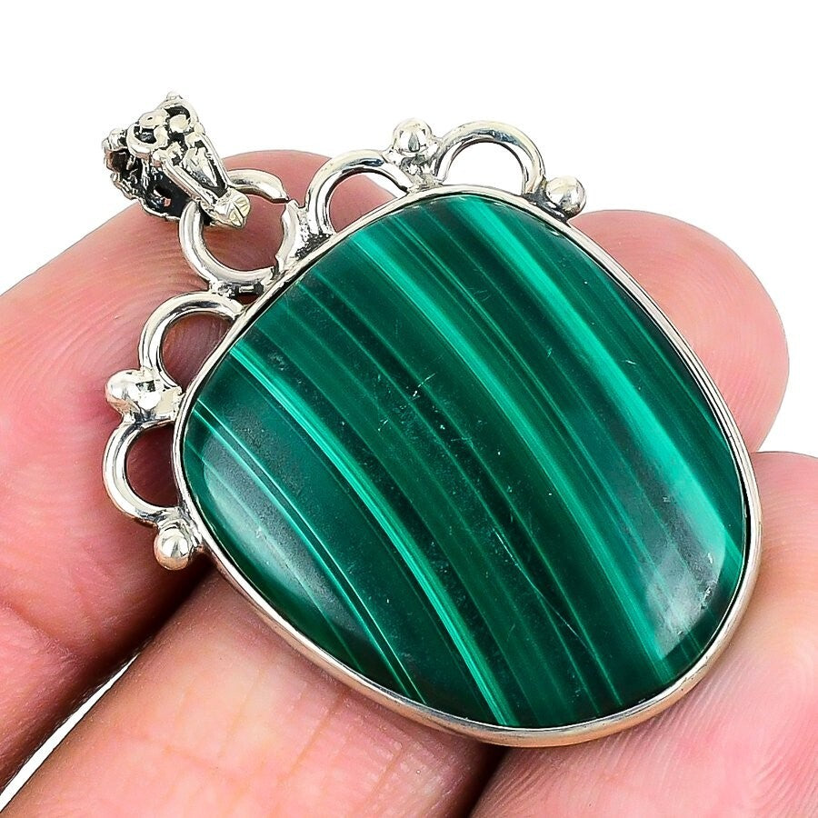 Malachite Gemstone Solid Silver Engagement Bezel Sister Handmade Pendant Jewelry