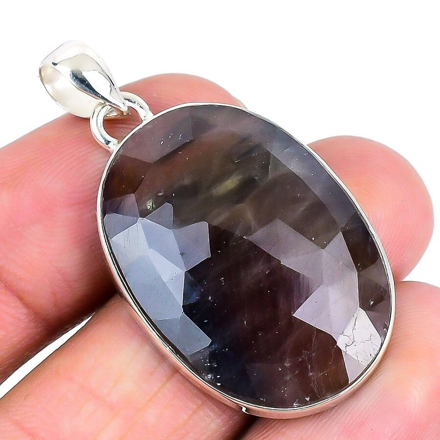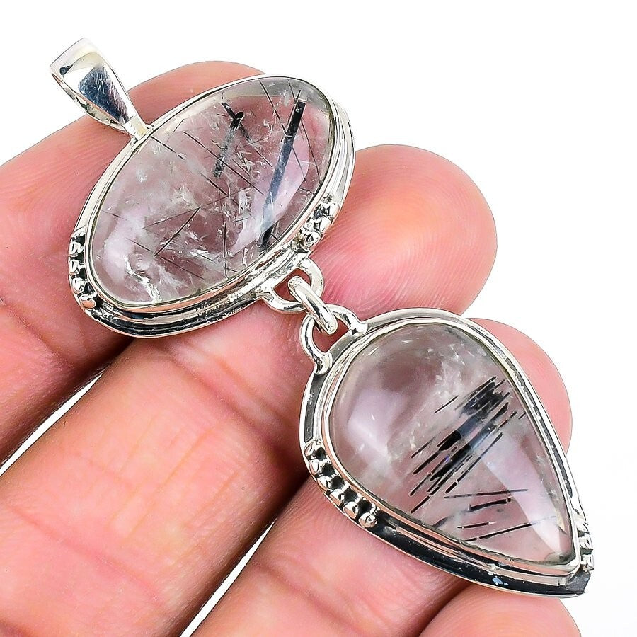 Mothers day Sale Black Rutile Stone 925 Sterling Silver Sister Birthday Pendant