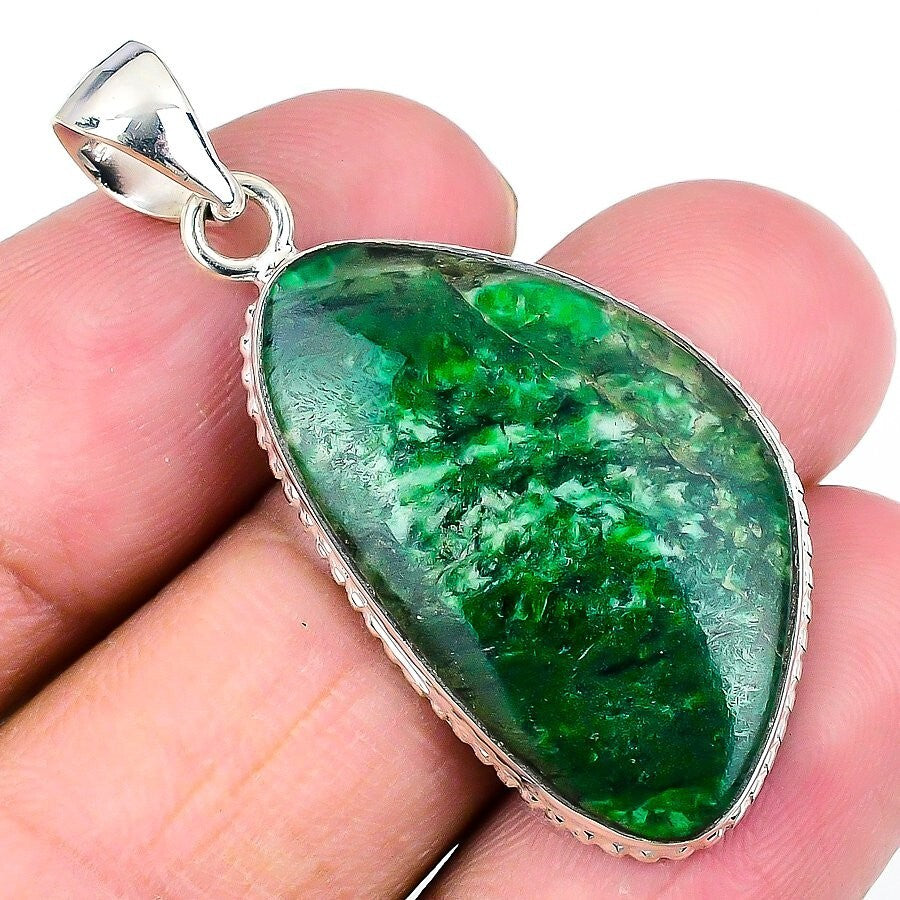 Throat Chakra Natural Green Kyanite Solid Sterling Silver Unique Pendant Jewelry
