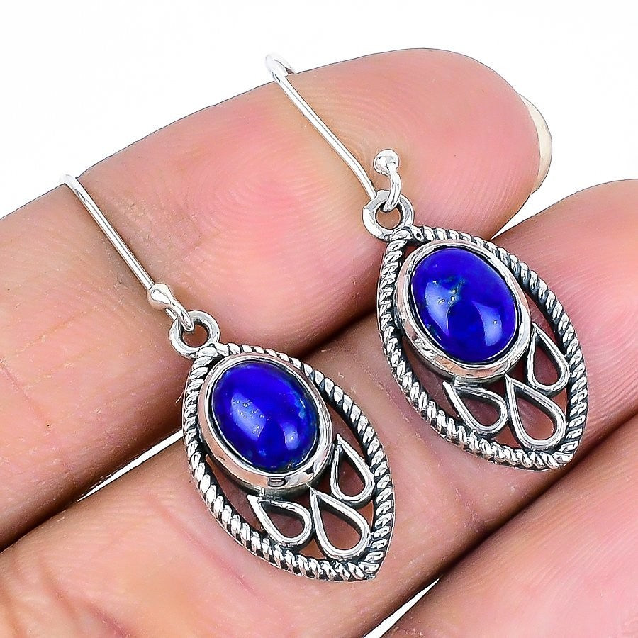 September Natural Lapis Lazuli Hook Engagement Dangle Wife Earrings Solid Silver