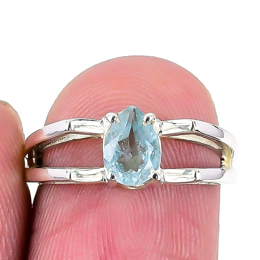 March Birth Natural Aquamarine Sterling Silver Statement New Ring Jewelry Size 6