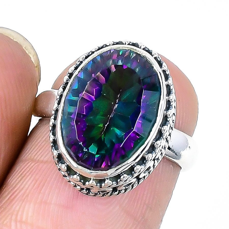 Mystic Rainbow Topaz Stone Sterling Silver Statement Wedding Daughter Ring US 6