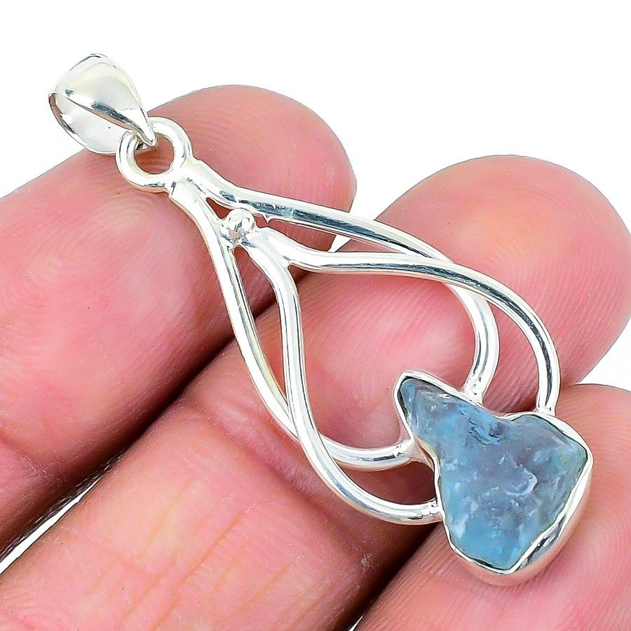 March Birth Aquamarine Gemstone Mother Engagement New Pendant 925Ā SolidĀ Silver