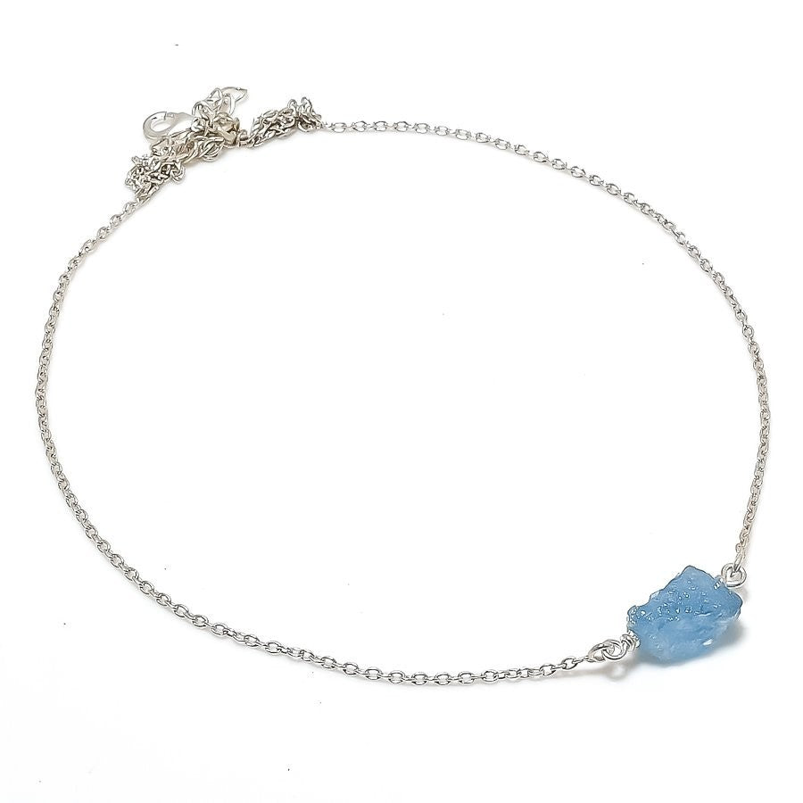 Aquamarine Druzy Gemstone Ethnic Chain Art Deco Trendy Hook Necklace 925 Silver