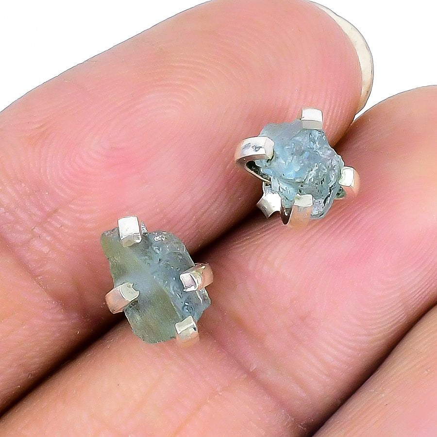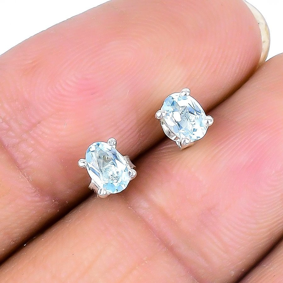 November Natural Aqua Topaz Solid Silver Stud Post Best Daughters Gift Earrings