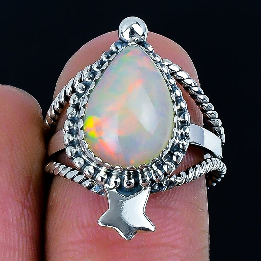 Natural Ethiopian Opal 925Ā SolidĀ Silver Sister Unique Boho Statement Ring Size 7