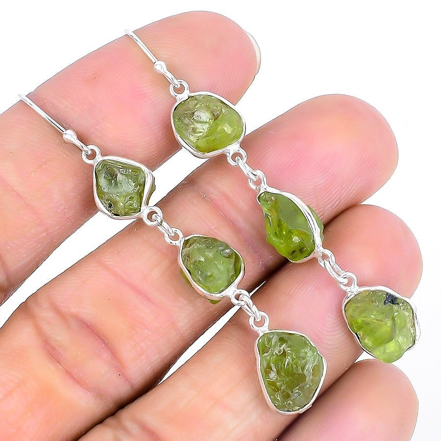Peridot Druzy Gemstone 925 Silver Hook New Dangle Daughters Day Earrings Jewelry