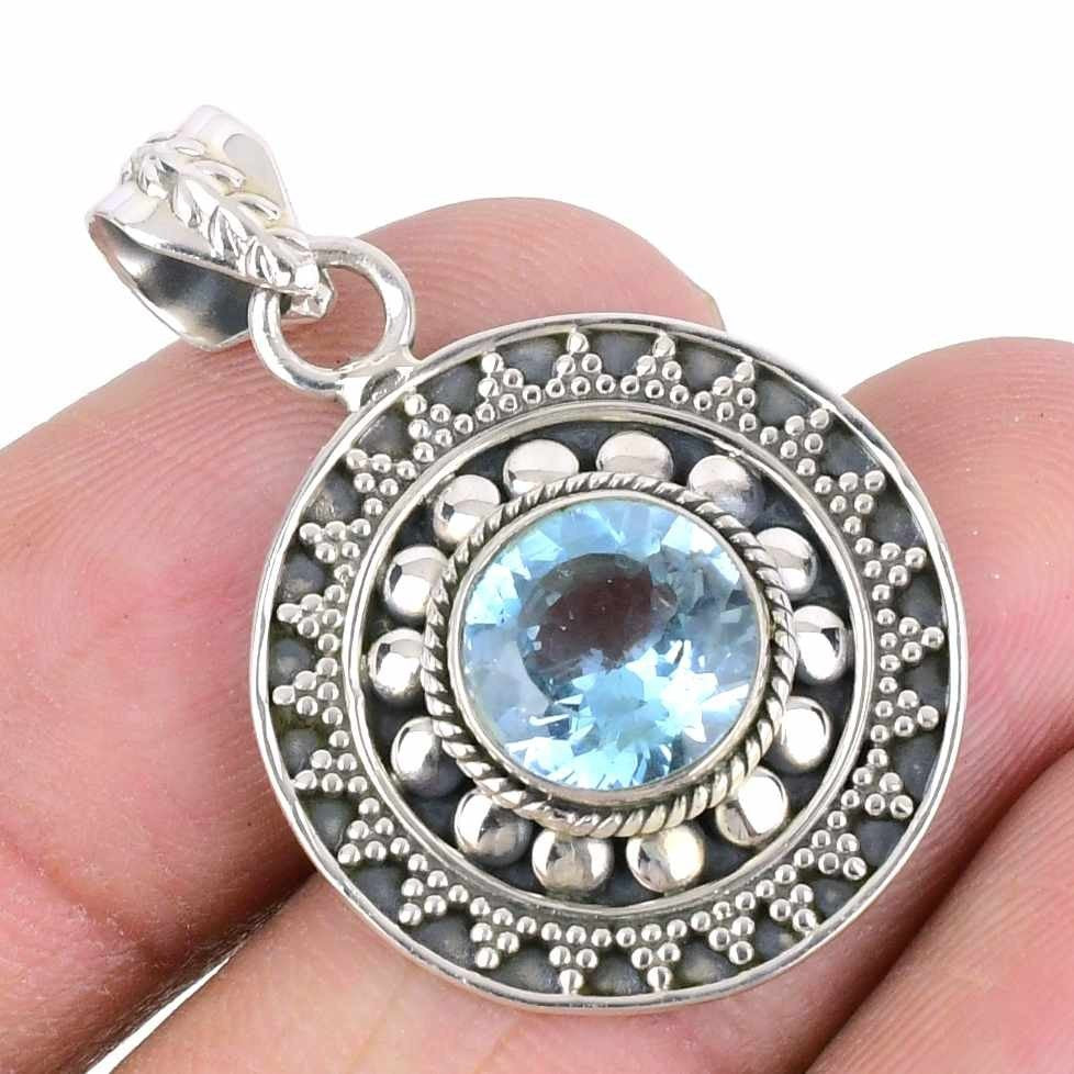 Swiss Blue topaz Stone 925 Sterling Silver Sister Engagement New Pendant Jewelry