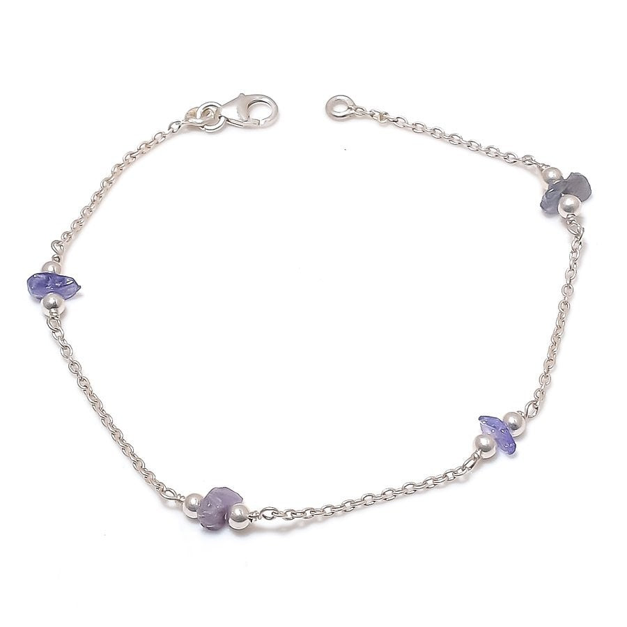Tanzanite Quartz Druzy Stone 925 Silver Elegant Wife Chain Hook Bracelet Jewelry