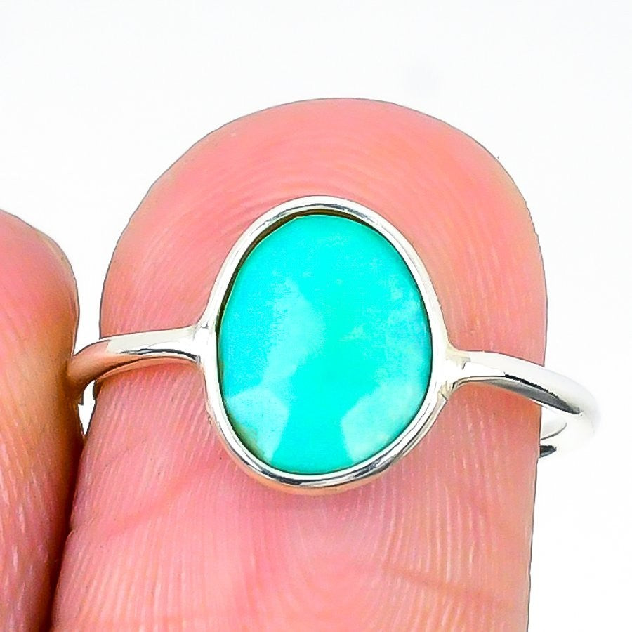 Arizona Turquoise Gemstone Sterling Silver Wedding Wife Band Unique Ring Size 6