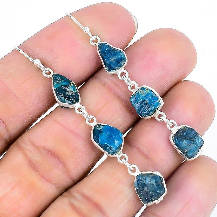 Apatite Druzy Gemstone 925 Silver Boho Dangle Drop Hook Birthday Sister Earrings