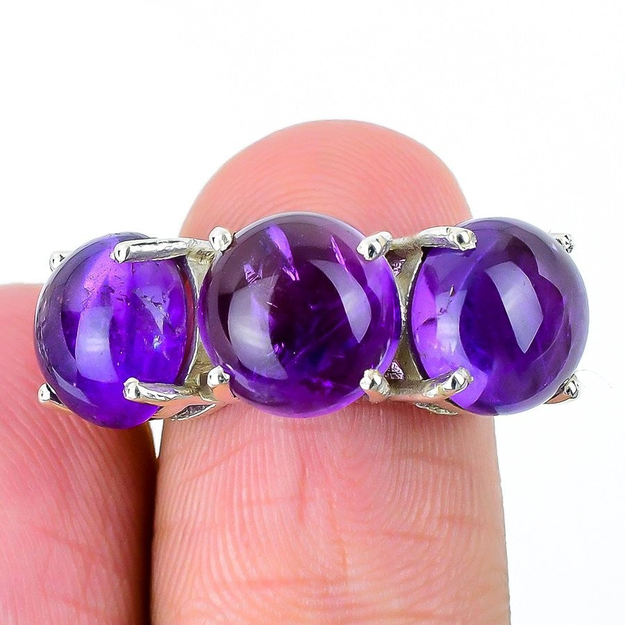 Natural Sage Amethyst 925Ā SolidĀ Silver Birthday Statement Daughter Gift New Ring