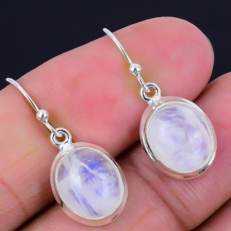 Crown Chakra Rainbow Moonstone Gemstone Dangling New Earrings Jewelry 925 Silver