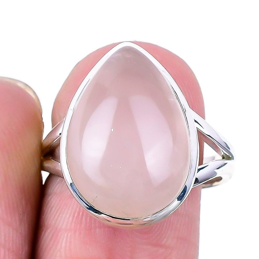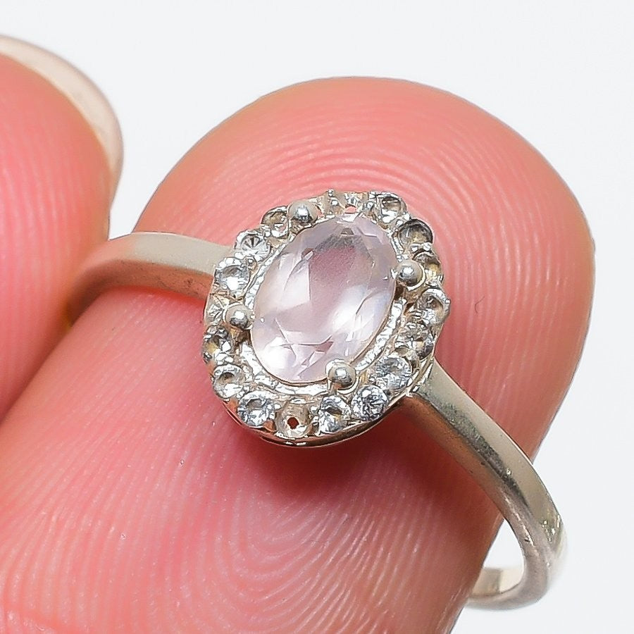 Rose Quartz Gemstone 925 Silver Daughters Day Cluster Handcrafted Ring Size 8