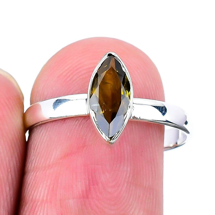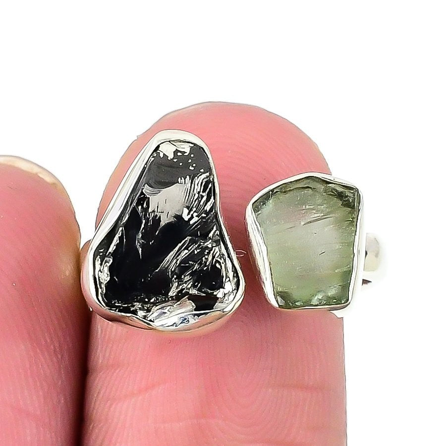 Natural Moldavite Statement Third Eye Chakra Ring Jewelry Sterling Silver US 7