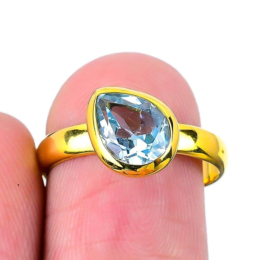 Swiss Blue Topaz Stone 925 Sterling Silver Wedding Statement Ring Jewelry Size 8