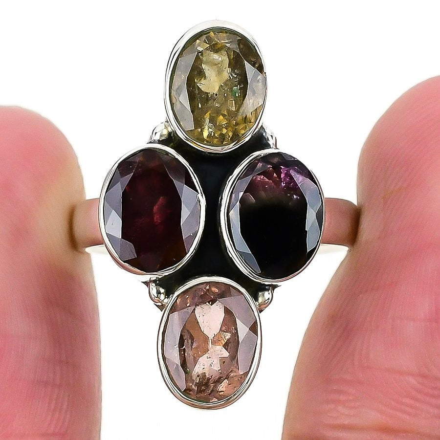 Daughters Day Deal Watermelon Tourmaline Stone 925 Silver Wedding Statement Ring
