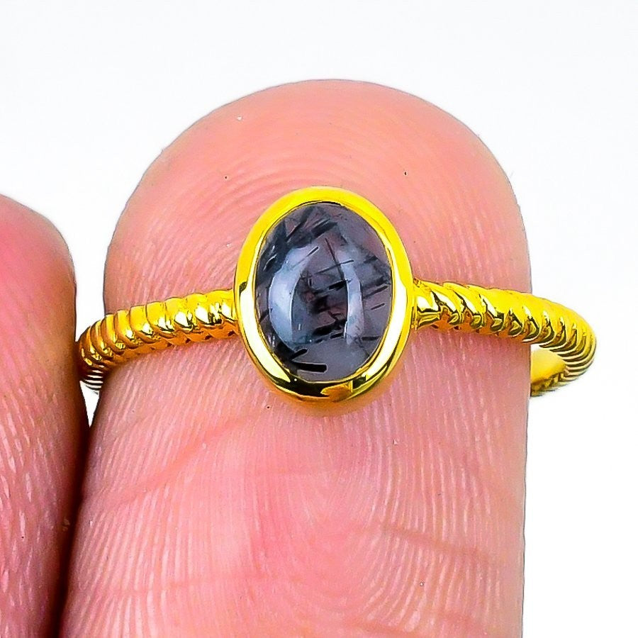 Black Rutile Stone Solid Sterling Silver Sister Elegant Band Ring Jewelry US 7