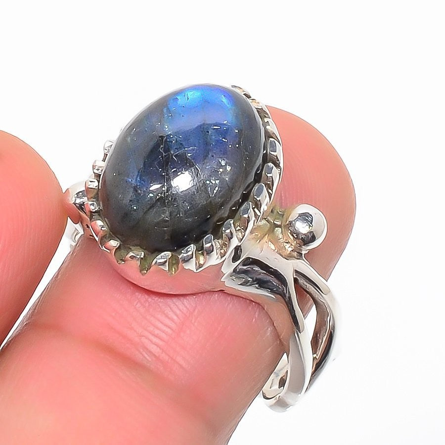 Labradorite Gemstone Sterling Silver Birthday Engagement New Cluster Ring Size 8