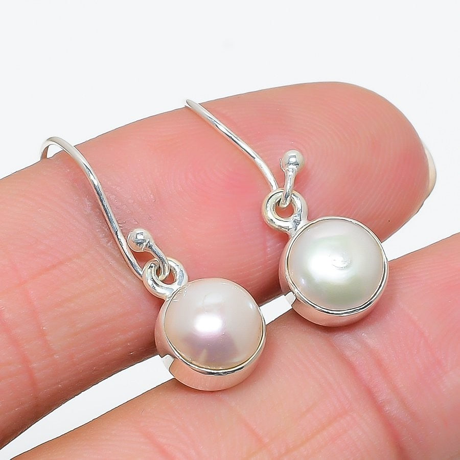 River Pearl Gemstone Solid Sterling Silver Dangling Art Deco Earrings Jewelry