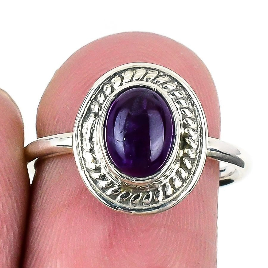 Natural Sage Amethyst 925 Sterling Silver Handmade Statement Wedding Ring Size 7