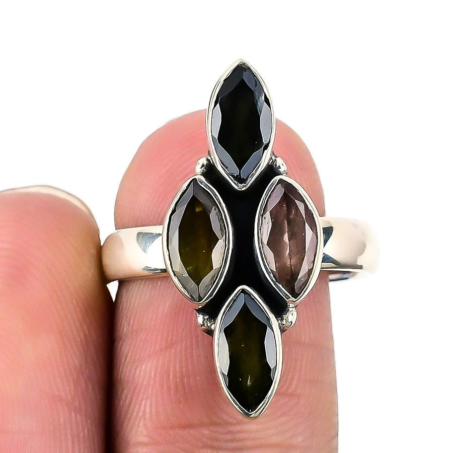Pink Tourmaline Stone 925 Sterling Silver Wife Boho Statement Ring Jewelry US 8