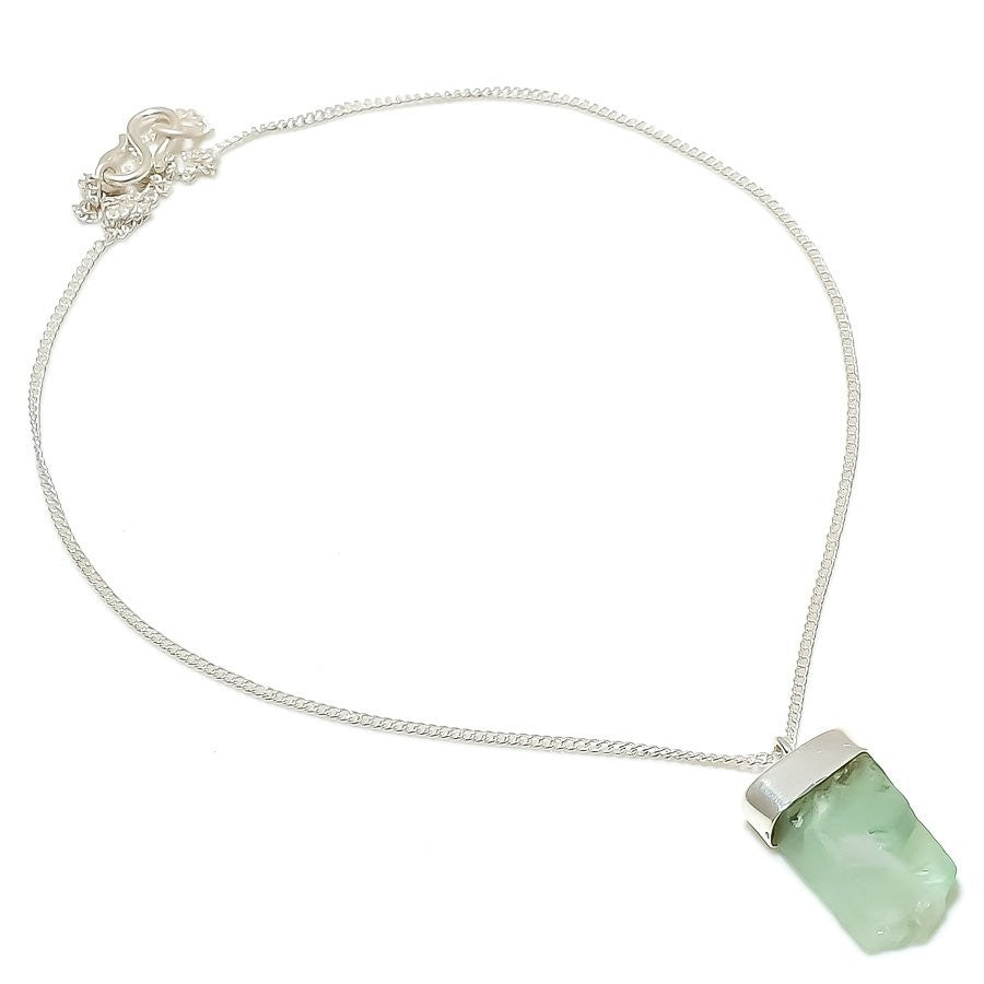 Prehnite Gemstone 925 Silver Sister Trendy Chain Unique Ethnic Necklace Jewelry