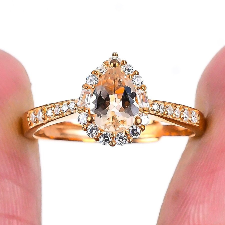 Morganite Stone Solid Silver Art Deco Mother Birthday Statement Anniversary Ring