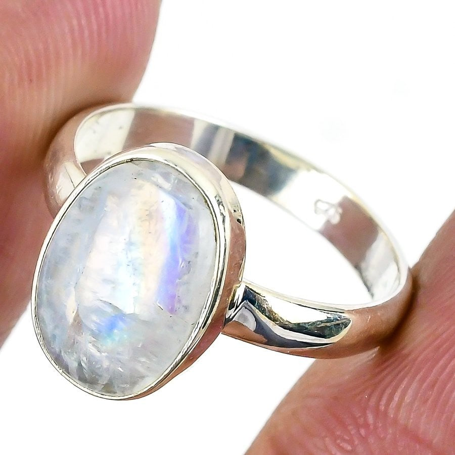 Natural Rainbow Moonstone 925 Solid Silver Wedding Statement Daughter Ring US 7