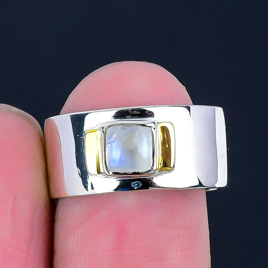 Rainbow Moonstone Faceted Stone 925 Silver Wedding Cluster Ring Jewelry Size 7.5