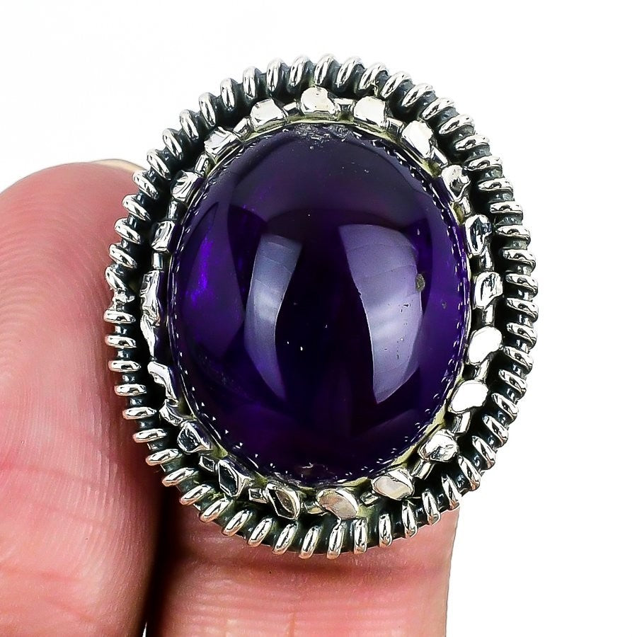 Sage Amethyst Stone Sterling Silver Sister New Statement Ring Jewelry Size 7.5