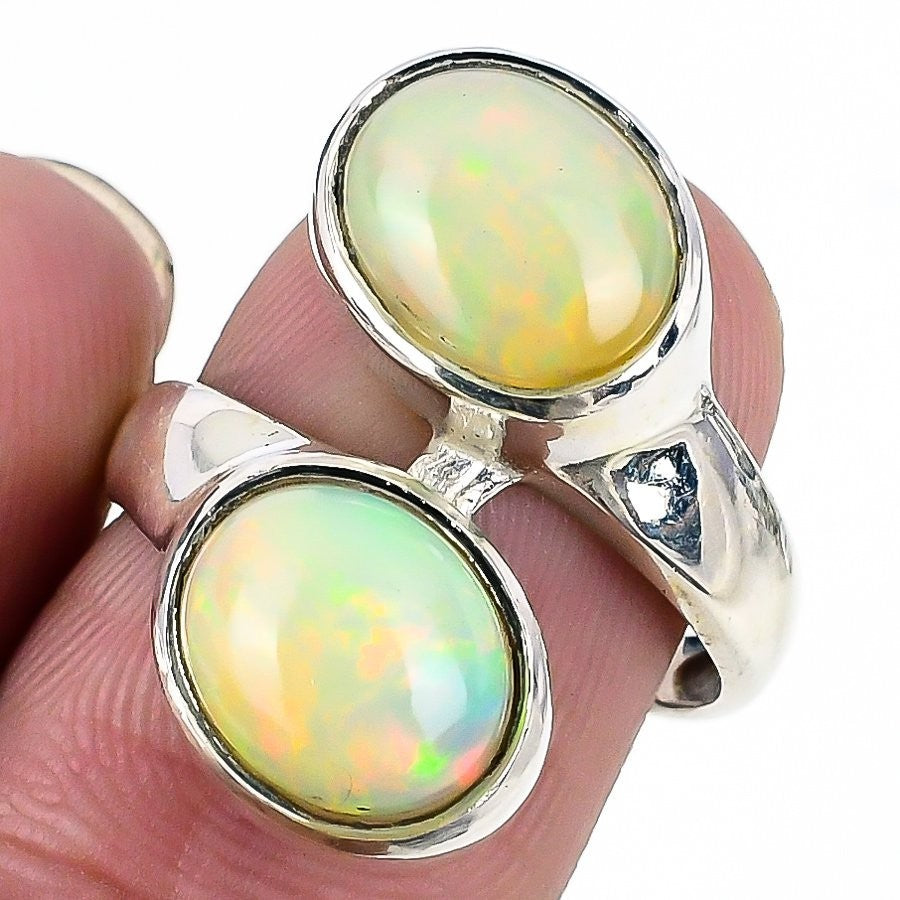 Daughters Day Sale Natural Ethiopian Opal 925 Silver Cluster Trendy Wedding Ring