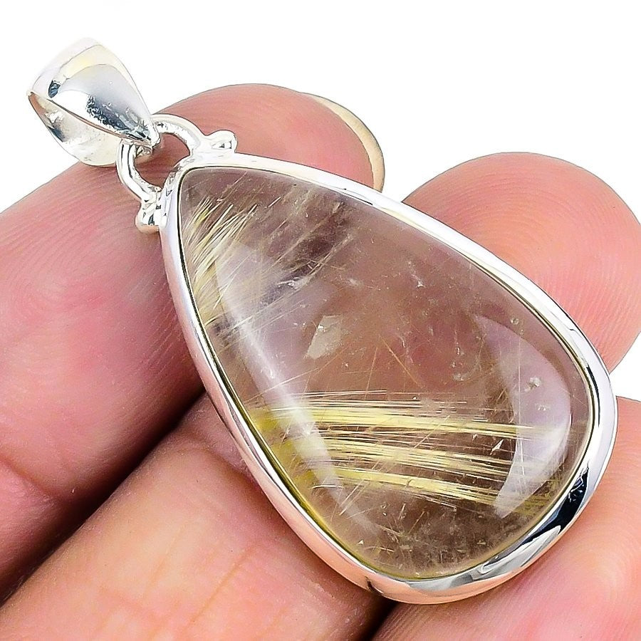 Daughters Day Deal Golden Rutile Gemstone Solid Sterling Silver Pendant Jewelry